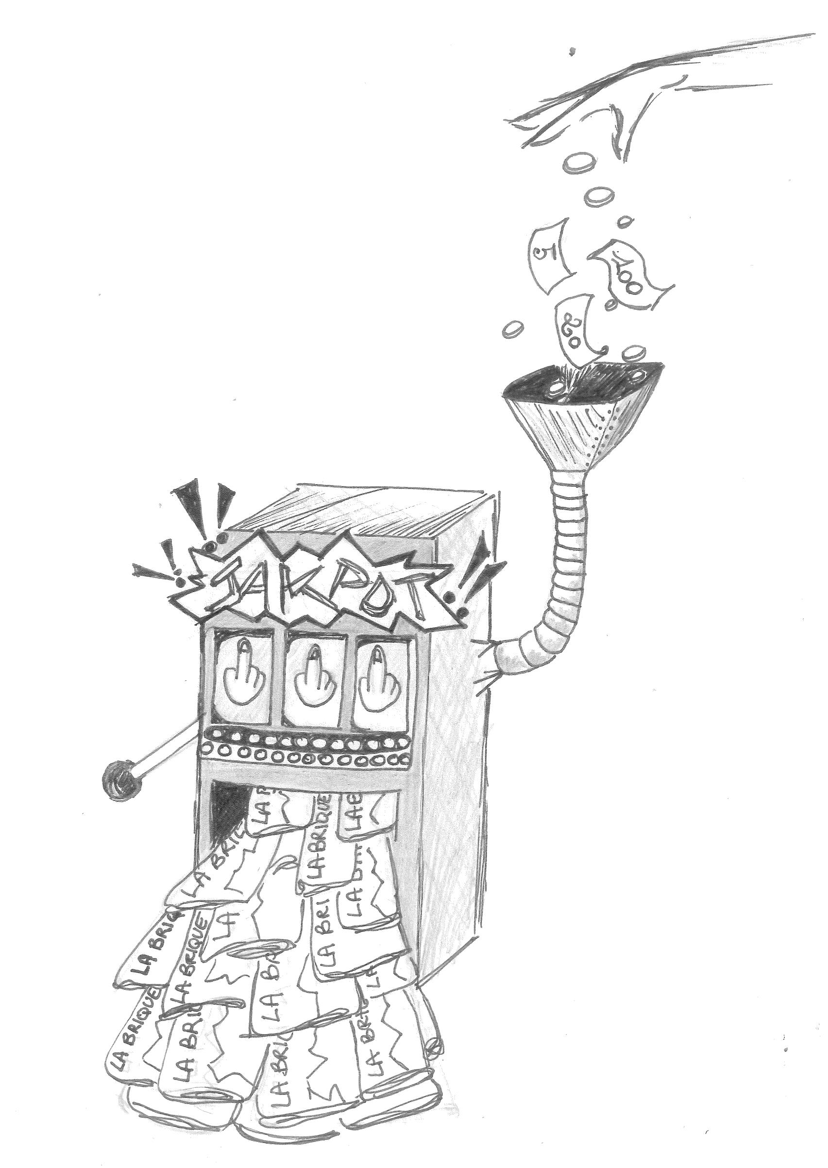 Dans notre fonctionnement, seules les ventes du journal nous financent, garantissant ainsi notre indépendance éditoriale. Mais on a beau vendre presque 1000 exemplaires du canard à chaque numéro, entre les 30% que nous prennent PRESTALIS et les frais d’impression, les factures téléphoniques et l’abonnement internet, le compte n’y est pas : les ventes ne sont jamais suffisantes pour payer nos impressions. Et c’est notre imprimeur qu’on doit remercier de ne pas nous presser de le rembourser (spéciale dédicace Mév.).