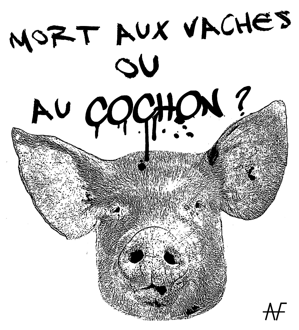 Enquête réalisée à base de popopopop par J. de L’E., Stella, AW & Paremski.[1] Un individu pose « cochon » sur tous les murs de la métropole, y compris ceux de magasins tels que les kebabs ou autres épiceries arabes. Une signature salement inopportune dans une société raciste qui stigmatise sans relâche les musulman-es.