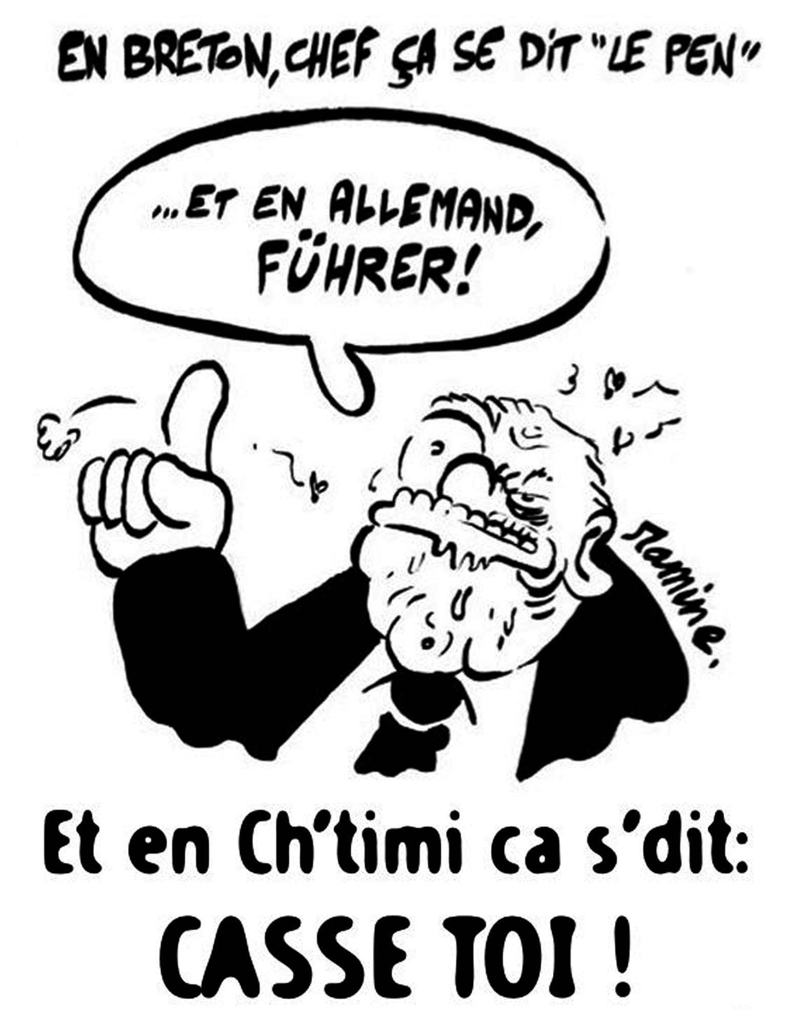 Ça bouge aussi du côté du FN lillois qui déménage dans des locaux de 97m² au rez-de-chaussée du 24 boulevard Jean-Baptiste Lebas à Lille. La transaction réalisée en avril par l’agence Sergic se révèle plus économe : le loyer n’y est « que » de 10 800 euros par an. L’inauguration s’est déroulée le 13 juin en présence de Marine Le Pen avec une petite sauterie arrosée de champagne Maréchal [2] et décorée de drapeaux irlandais pour rendre hommage à leur « Non » à la constitution européenne. Le bar arborait également un grand drapeau barré d’un péremptoire « Nous sommes tous des Irlandais ! » Et si on préfère être un juif allemand ?