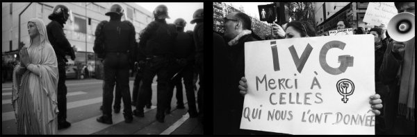 Longtemps cantonnés à une dizaine de bigots, d’ailleurs peu capables de ne pas s’entredéchirer, ces ouailles de Mgr. Lefebvre se sont munies cette fois d’une bonne partie de la famille de l’extrême-droite lilloise : frontistes, Scouts d’Europe, Jeunesses Identitaires-Flandres, et même les païens de Terre Celtique sont venus se rassembler, voire annoncer un rapprochement. Alors, les fafs... envie d’un nouveau Saint Empire Romain-Germanique ? Toujours est-il qu’une centaine de défenseur-euse-s des droits des femmes et des homos (i.e. lesbiennes, gais, bis, transes), ont riposté à cette cinquantaine d’arrière-gardistes d’un moyen-âge totalitaire, en leur chantant sur des airs d’Anne Sylvestre des bouquets à faire rougir une Vierge. Annonçant par là que, malgré la présence d’une chrétienne Boutin au gouvernement et des municipales à venir, la vigilance reste de mise sur les acquis d’une IVG et d’une contraception libres et gratuites. Il y a de quoi : jadis mandatée par la Congrégation pour la Doctrine de la Foi (ex-Inquisition, au Vatican) afin de « re-christianiser la France »*, Mme. Boutin peut de nouveau, depuis que Ratzinger a réhabilité les intégristes, exiger la messe en latin en France. Mais au fait.. « mon corps m’appartient », ça doit pouvoir se traduire, même en latin, non ?
