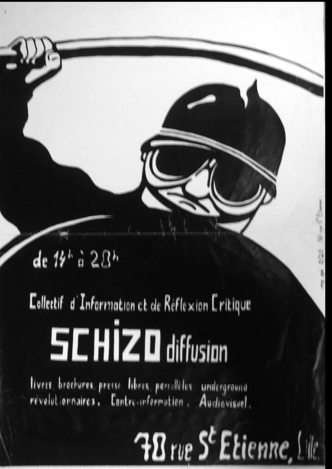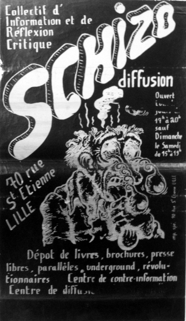 Schizo Diffusion se monte dans un contexte où trouver l’information en dehors des espaces médiatiques sous contrôle est difficile. La presse alternative existe bien, mais les réseaux de diffusion ne sont pas encore ce qu’ils seront plus tard : pas d’internet, auto-édition confinée, l’ordinateur personnel n’existe pas encore...